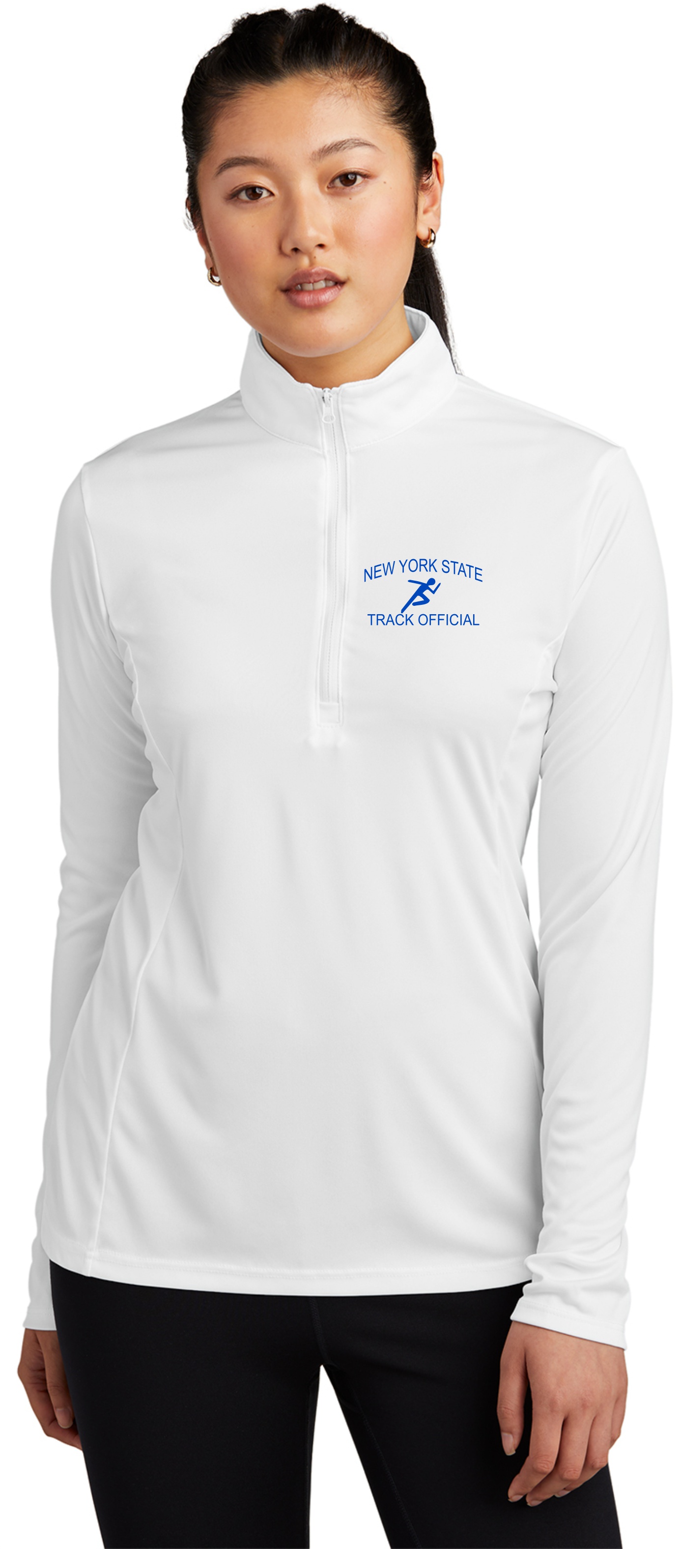 Electric Heather Colorblock 1/4-Zip Pullover-Ladies Sport-Tek Ladies PosiCharge Electric Heather Colorblock 1/4-Zip Pullover Ladies. This lightweight pullover is 4.1-ounce, 100% polyester jersey with PosiCharge technology. Removable tag. Cadet collar. Reverse coil zipper. Colorblock on shoulders and sleeves. Set-in sleeves. Princess seams. Drop tail hem. Open cuffs and hem. Left Chest and back yoke embroidery