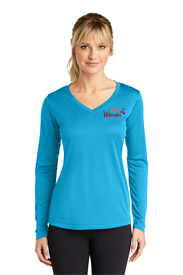 Ladies Long Sleeve PosiCharge Competitor V-Neck Tee Sport-Tek Ladies Long Sleeve PosiCharge Competitor V-Neck Tee. LST353LS Lightweight roomy and highly breathable these moisture-wicking value-priced tees feature PosiCharge technology to lock in color and prevent logos from fading.3.8-ounce 100% polyester interlock with PosiCharge technology Removable tag for comfort and relabeling Self-fabric V-neck Set-in sleevesGiven the extreme heat required for sublimation please consult with your decorator. It is highly recommended to sample test product by color before production. Product Spec Sheet