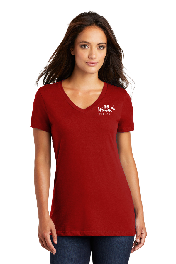 Women's Perfect Weight V-Neck Tee District - Women s Perfect Weight V-Neck Tee. DM1170L The perfect v-neck tee for a polished look. 4.3-ounce 100% combed ring spun cotton 32 singles1x1 rib knit neckShoulder to shoulder tapingPlease note: This product is transitioning from woven labels to tear-away labels. Your order may contain a combination of both labels. Product Spec Sheet