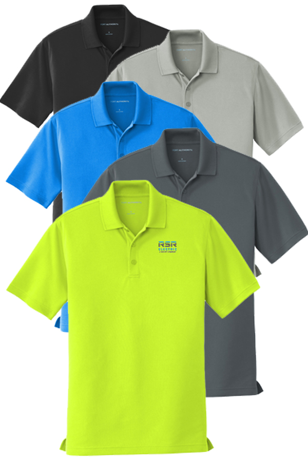 100% polyester double knit pique. UPF rating of 30. Tag-free label. Flat knit collar. 3-button placket and pearlized, dyed-to-match buttons. Open hem sleeves. Side vents.