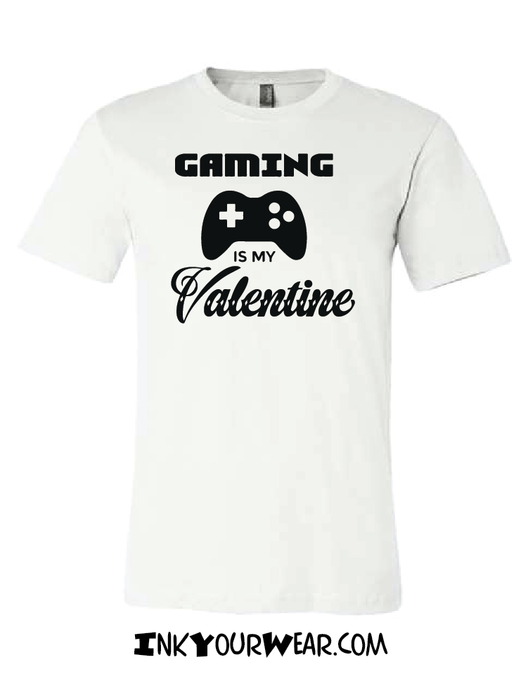 1 Gaming is my Valentine Multiple shirt colors available or print on a Mug Designs printed in a 100% soft cotton shirt, Unisex cut semi fashion cut (not the classic bulky cut, not too fitted)