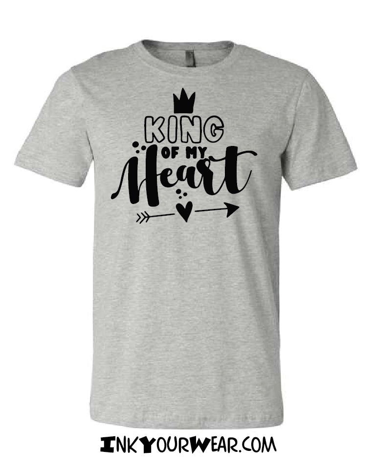 1.2 King of my Heart Multiple shirt colors available or print on a Mug Designs printed in a 100% soft cotton shirt, Unisex cut semi fashion cut (not the classic bulky cut, not too fitted)