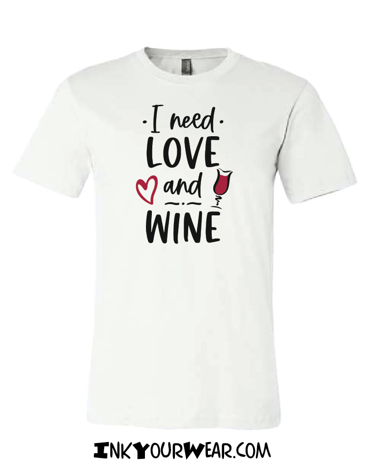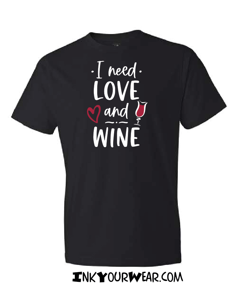 1 I need Love and Wine Multiple shirt colors available or print on a Mug Designs printed in a 100% soft cotton shirt, Unisex cut semi fashion cut (not the classic bulky cut, not too fitted)