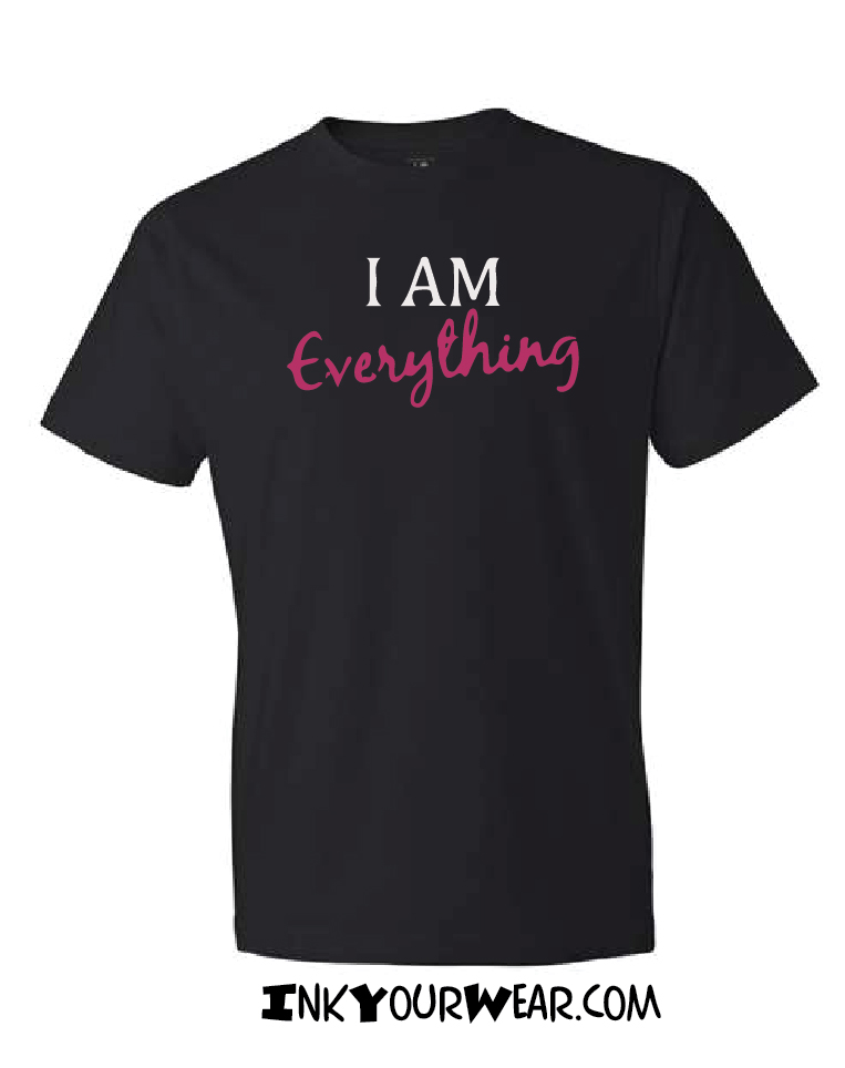 1.3 I am Everything Multiple shirt colors available or print on a Mug Designs printed in a 100% soft cotton shirt, Unisex cut semi fashion cut (not the classic bulky cut, not too fitted)
