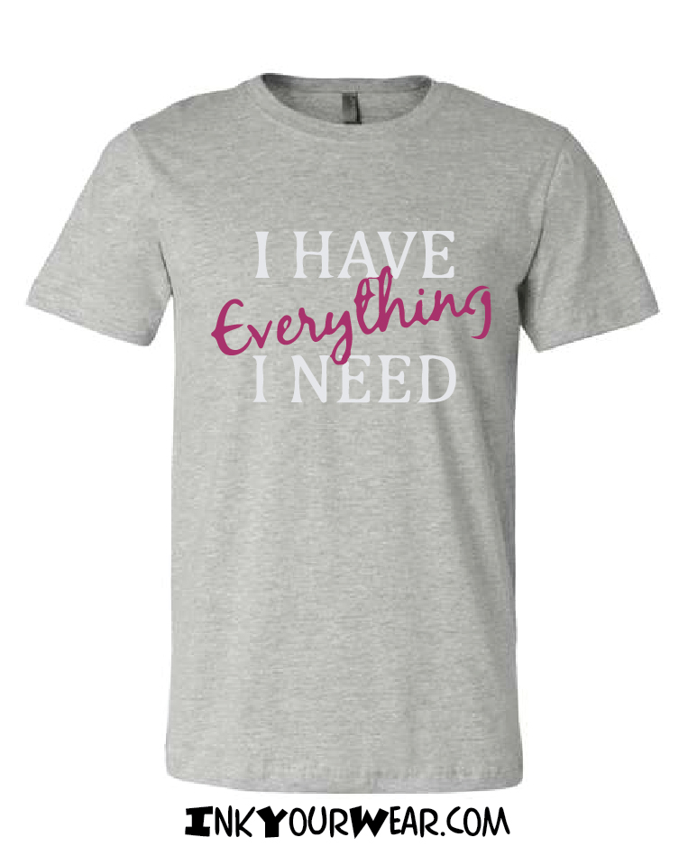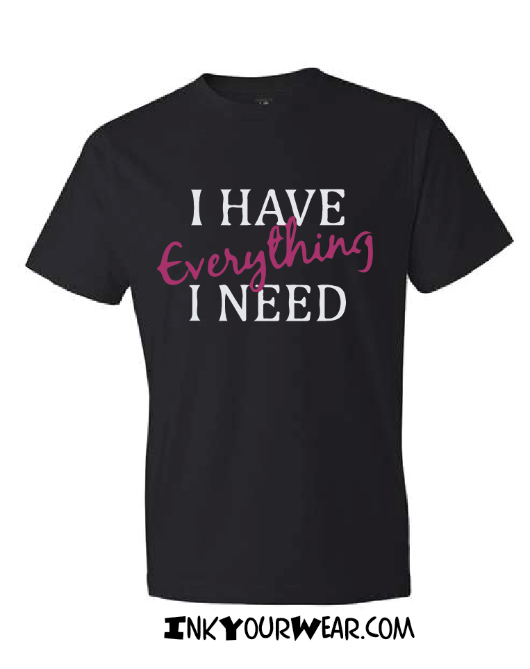 1.3 I have Everything I need Multiple shirt colors available or print on a Mug Designs printed in a 100% soft cotton shirt, Unisex cut semi fashion cut (not the classic bulky cut, not too fitted)