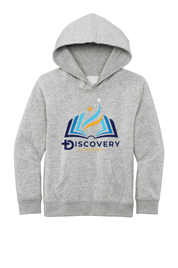 Youth V.I.T- Academy Logo District Youth V.I.T.Fleece Hoodie DT6100Y An ideal canvas for decorators this soft fleece is everything and more at an unbeatable value. 8.3-ounce 65/35 ring spun cotton/polyester 100% ring spun cotton face (Solids Light Heather Grey)60/40 ring spun cotton/polyester (Royal Frost Heathered Charcoal) Jersey-lined two-piece hoodDyed-to-match twill back neck tape No drawcord Side seamed 1x1 rib knit cuffs and hem Tear-away label Product Spec Sheet