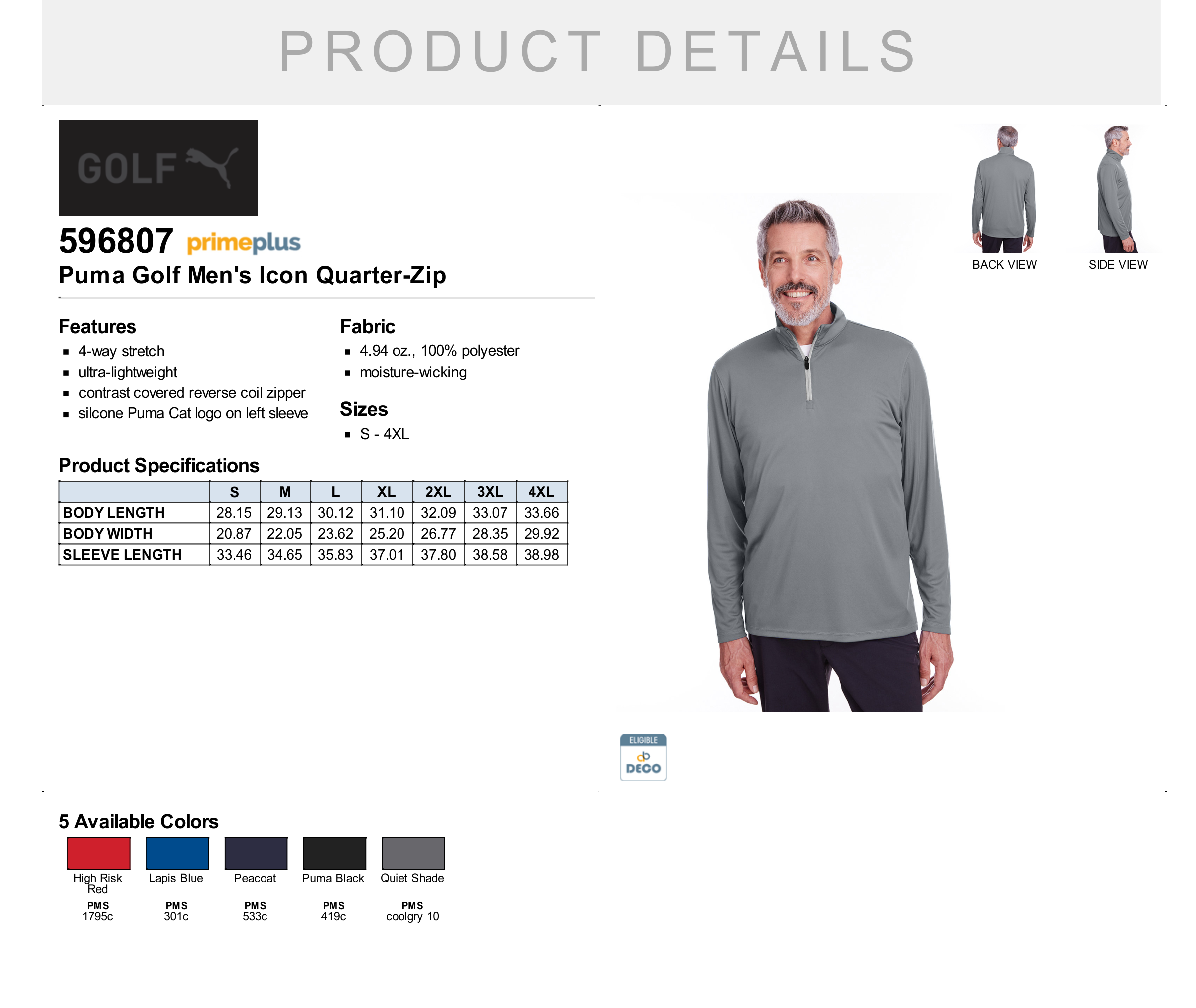 Description Puma Golf Men's Icon Quarter-Zip embroidered left chest for Creative Financial Group in White