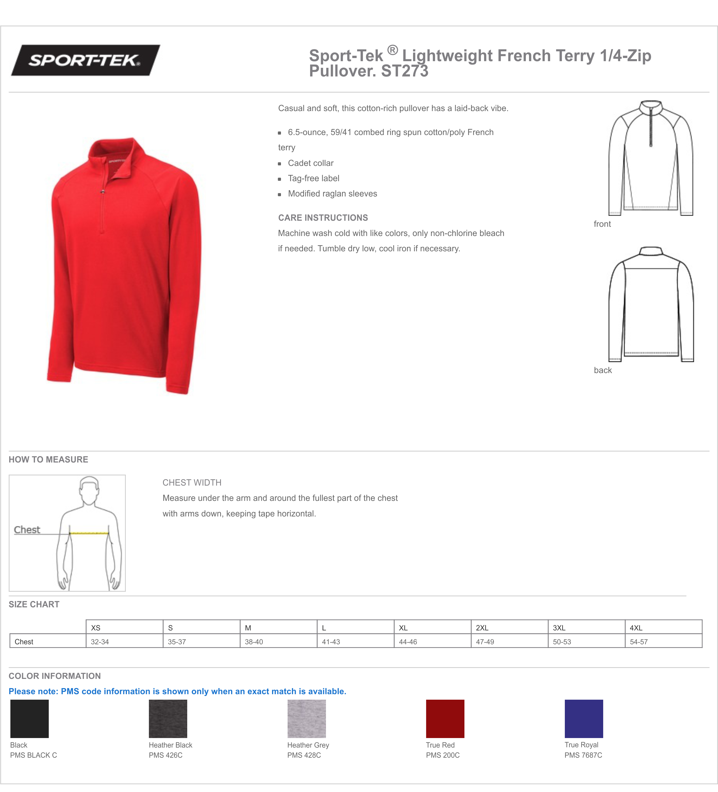 Description Sport-Tek Lightweight French Terry 1/4-Zip Pullover embroidered left chest for Creative Financial Group.