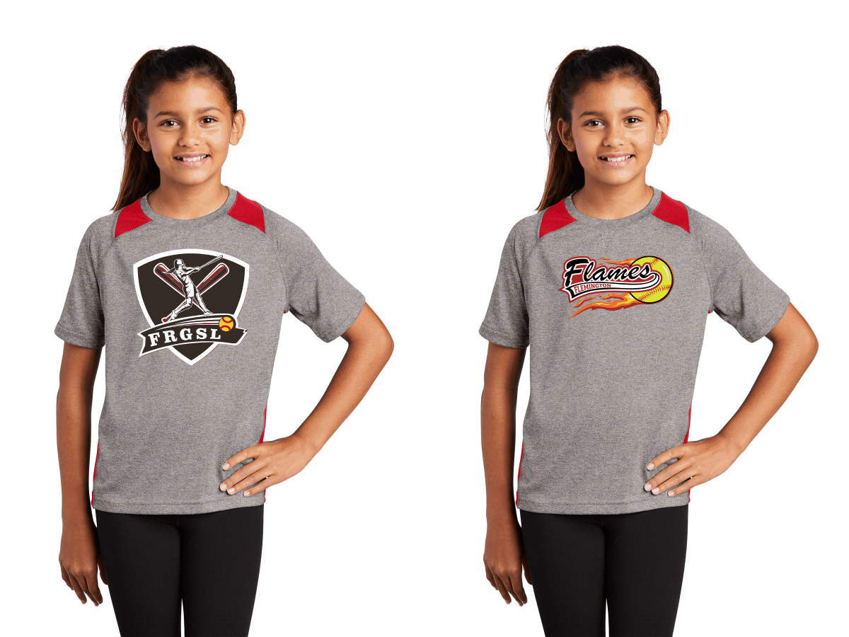 Sport-Tek Youth Heather Colorblock Contender Tee printed full front