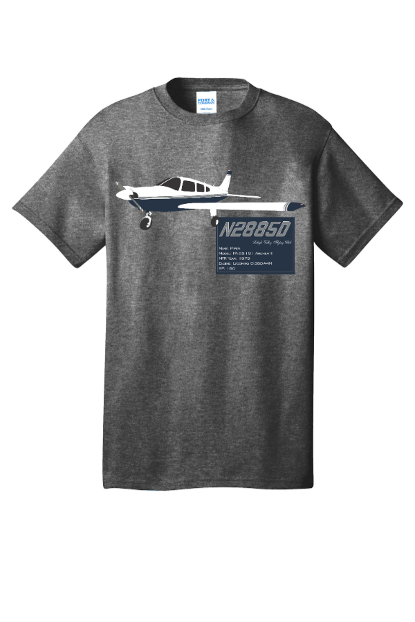 N2885D Graphic Tee PC54 A comfortable, light 50/50 cotton/poly blend tee, featuring a graphic and info card for N2885D