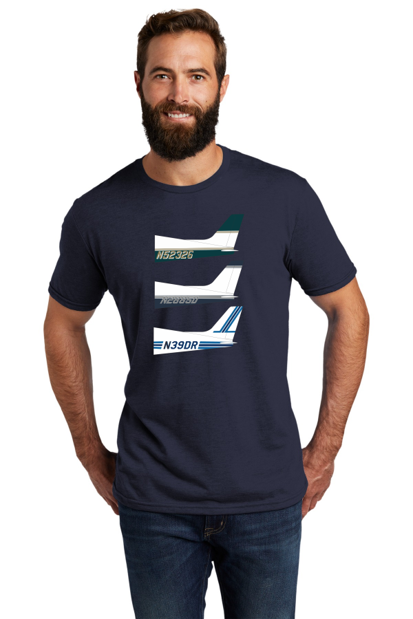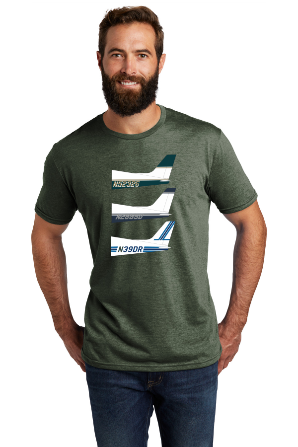 Description An incredibly soft sustainable tee that uses an equivalent of up to 6 recycled plastic water bottles. Features a unique graphic of the tail sections of all the LVFC aircraft.