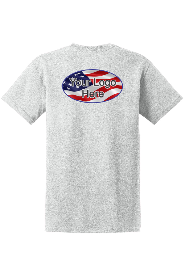 Men's Ultra Cotton T-Shirt with full-color left chest & back logos 6-ounce 100% US cotton. Non-topstitched classic width rib collar. Taped neck and shoulders. Tubular. Product Spec Sheet Color Swatch