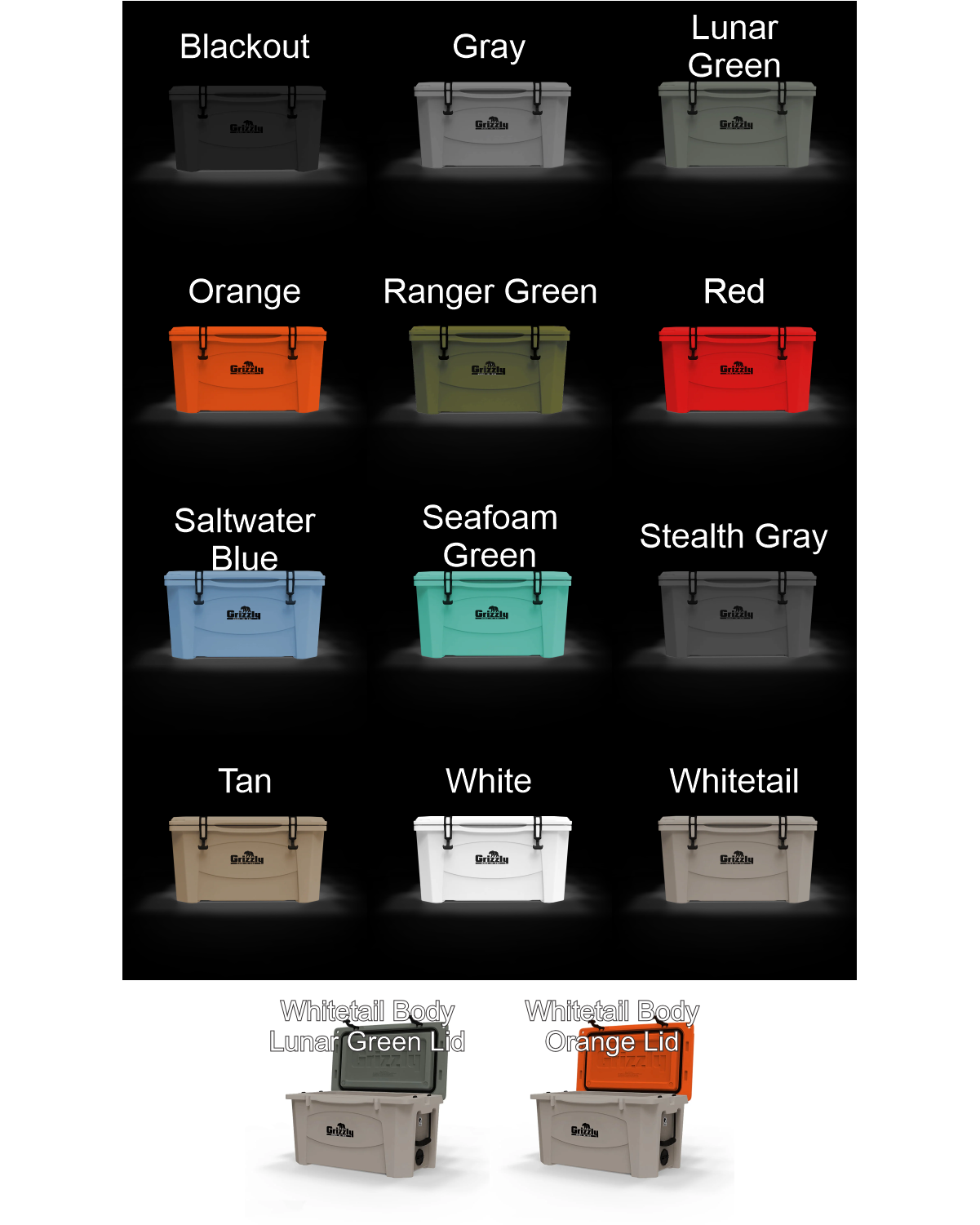 Grizzly 60 Quart Cooler Printed on Lid Choose Company Logo Using Drop-Down Menu Consider the Grizzly 60 the perfect cooler to accompany you and your crew on a week’s worth of epic outdoor adventure. Leave no snack behind when you’re working with 60 quarts of space for food, drinks, and ice. The Grizzly 60 is Rototough™ (like all of our hard-sided coolers) and loaded with awesome features. Let the G60 do the work of keeping your goods fresh and cold as you and the crew enjoy the adventure.