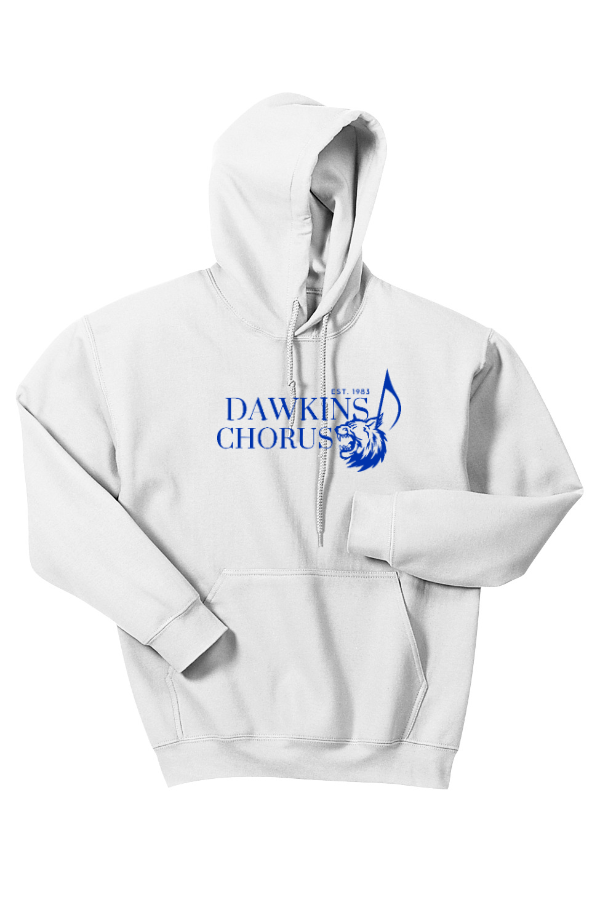 Gildan Heavy Blend Hooded Sweatshirt printed full front for Dawkins Chorus 8-ounce 50/50 cotton/poly. Double-needle stitching at waistband and cuffs. Double-lined hood with dyed-to-match drawcord. 1x1 rib knit cuffs and waistband with spandex. Front pouch pocket. Product Spec Sheet