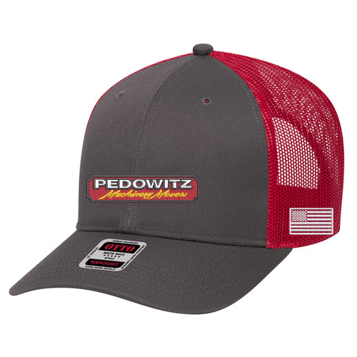 OTTO CAP 6 Panel Low Profile Mesh Back Trucker Hat (Gray/Gray/Red) with American Flag on side Low Profile - Shallow crown for a relaxed, casual fit. Structured firm front panels with full buckram provide a sturdy and defined shape. 6 Rows Stitching on Visor. Matching Color Sweatband. Mesh back for enhanced airflow. Premium durable plastic snap closure for a secure fit and easy adjustment.