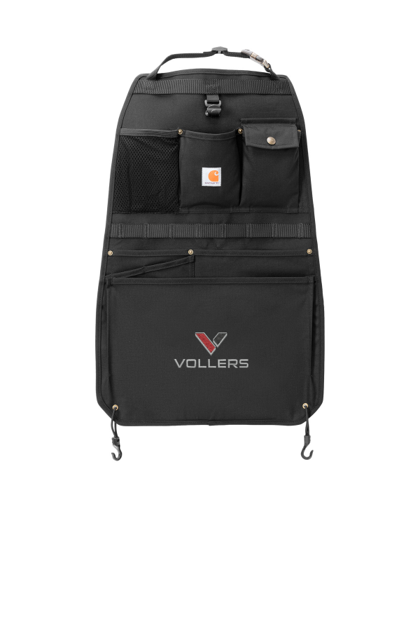 Carhartt Nylon Duck Organizer Choose Company Logo Using Drop-Down Menu Easy to hang wherever you need it this multi-pocket organizer keeps everything from car gadgets and tools to odds and ends at-the-ready. Rugged CORDURA fabric. Rain Defender durable water repellent (DWR). 8 cargo pockets. Stretch mesh pocket.Hook-n-haul system allows for attachments. Carhartt label sewn on front top pocket. Dimensions: 24.5 h x 15.5 w. Note: Bags not intended for use by children 12 and under. Product Spec Sheet