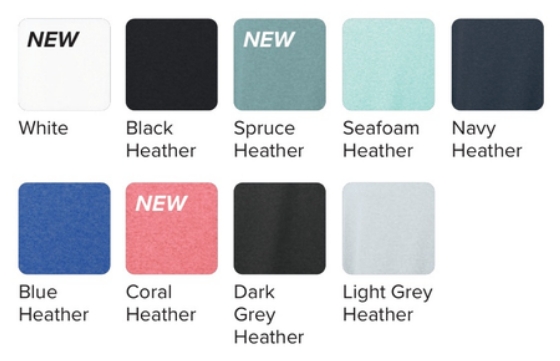 Heather Colorways: 90% Polyester/10% Spandex Jersey (4.72 oz/yd2).