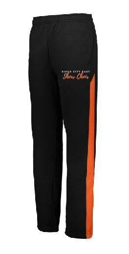 SC East Show Choir Mens pantsMEDALIST PANT 2.0 7760Sioux City East Show Choir logo embroidered on left leg. Heavyweight 100% polyester matte brushed tricot * Heat sealed label * Covered elastic waistband with inside drawcord * Side seam pockets * Back yoke * Contrast color side inserts * Zipper on outside lower leg |