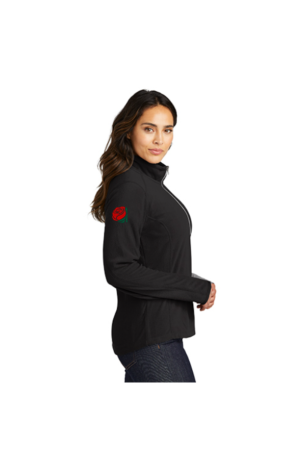 DKG Ladies 1/2-Zip Pullover with embroidery on left chest and sleeve Port Authority Ladies Microfleece 1/2-Zip Pullover. L224 Left chest DKG logo, right sleeve rose logo. For exercise or errands our pullover is warm enough to keep the cold at bay--yet soft lightweight and non-bulky. Budget-friendly this versatile style also has an anti-pill finish. 4.6-ounce 100% polyester microfleece Gently contoured silhouette Clear coil zipper with dyed-to-match chain stitching and taping Open cuffs and hem Thumbholes to keep hands warm Product Spec Sheet Color Swatch