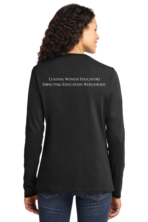 DKG Long Sleeve Tee - rhinestone front, screen print back Port & Company Ladies Long Sleeve Core Cotton Tee. LPC54LS DKG rose rhinestone logo on front, Leading Women tagline screenprinted on back. An indispensable t-shirt in our classic silhouette--with a very friendly price.5.4-ounce 100% cotton Side seamed with a contoured body for a feminine fit Open hem cuffsRemovable tag for comfort and relabeling Product Spec Sheet Color Swatch