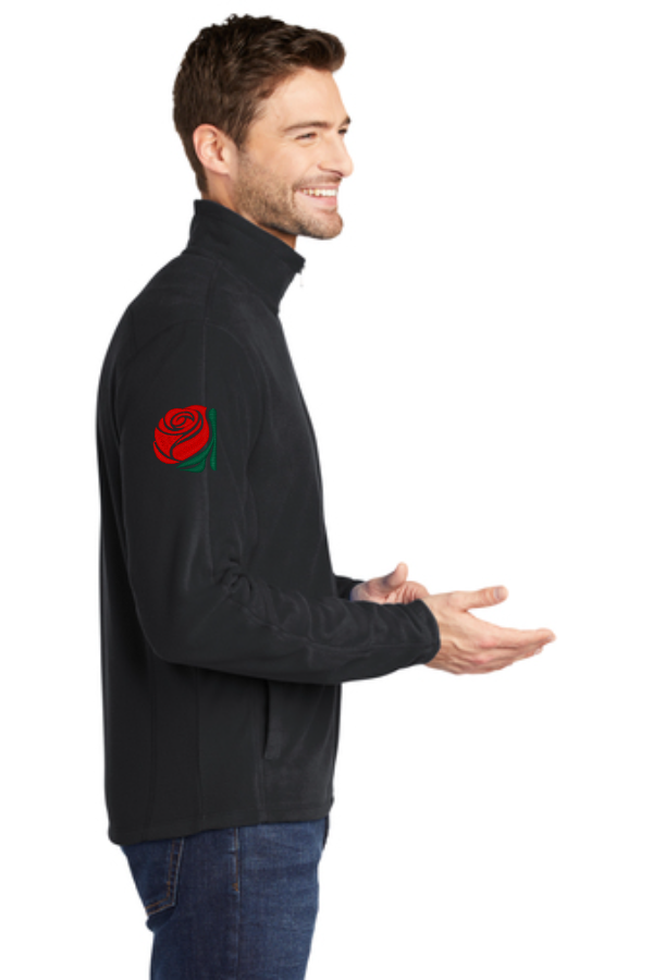 DKG Men's Full zip Microfleece Jacket with embroidery on left chest and sleeve Port Authority Microfleece Jacket. F223 DKG logo on left chest, rose logo on right sleeve. For cool-to-cold weather this lightweight microfleece jacket delivers warmth without unnecessary bulk. Perfect alone or layered it s a great value and it features clear coil zippers with dyed-to-match chain stitching and taping. An anti-pill finish helps preserve a clean appearance. 4.6-ounce 100% polyester microfleeceNon-zippered front pocketsOpen cuffs and hem Product Spec Sheet Color Swatch