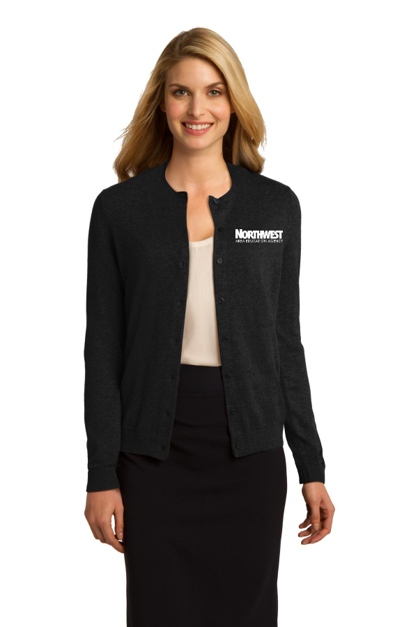 Port Authority Ladies Cardigan Sweater Choice of 4 colors. LSW287 A working woman's dream: a button-front cardigan sweater that adds soft polish yet washes and wears beautifully. This stylish cardigan easily layers over a polo or woven shirt and has fully-fashioned sleeves for long-lasting wear. 60/40 cotton/nylon Dyed-to-match buttons Delicate rib knit neck cuffs and hem Product Spec Sheet Color Swatch