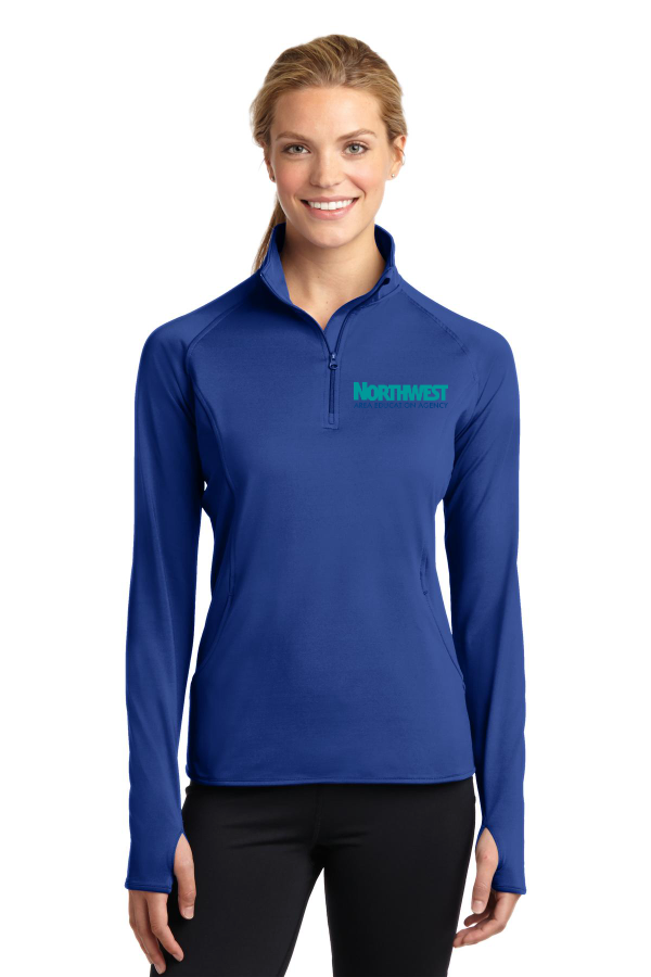 Sport-Tek Ladies Sport-Wick Stretch 1/4-Zip Pullover Choice of 4 colors. LST850 An extremely flexible layer with a soft-brushed backing and moisture control for year-round comfort. 6.8-ounce 90/10 poly/spandex Tag-free labelSmooth-faced Chin guard for additional comfort Cadet collar Taped neck Raglan sleeves Thumbholes to keep hands warm Front pouch pocket Open cuffs and hem *Due to the nature of 100% polyester performance fabrics special care must be taken throughout the screen printing process. Product Spec Sheet Color Swatch