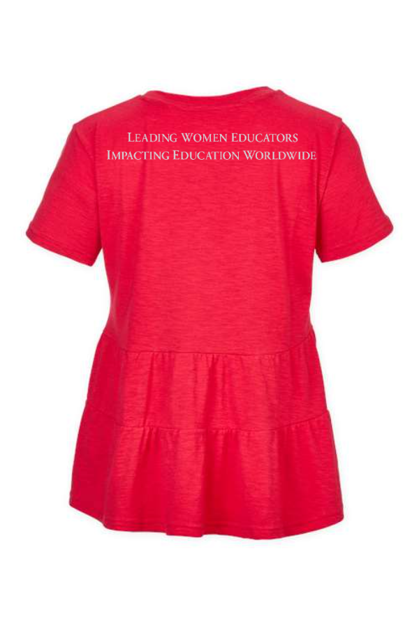 60/40 cotton/poly, Regular fit, Ruffle hem detailing, Self-neck band/ self-back neck tape.