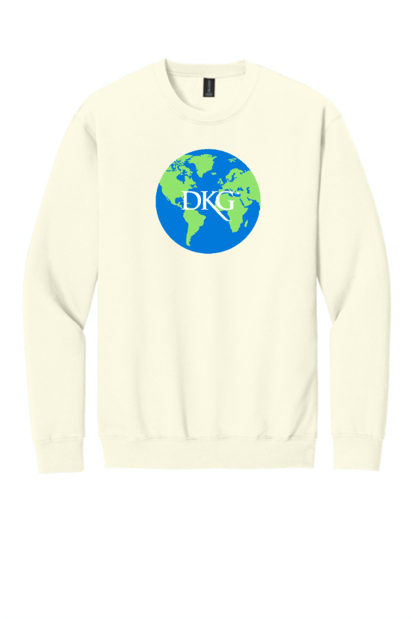 DKG Globe Crewneck Sweatshirt SF000 Gildan Softstyle Crewneck Sweatshirt SF000 DKG Globe front print, DKG mission statement print on back. 8.4-ounce 80/20 ring spun cotton/poly Two-end ring spun cotton face fabric 1x1 rib knit with spandex cuffs and bottom band Dropped shoulder Double-needle topstitching throughout Tubular body Classic fit Recycled high-performing black tear-away label Product Spec Sheet Color Swatch