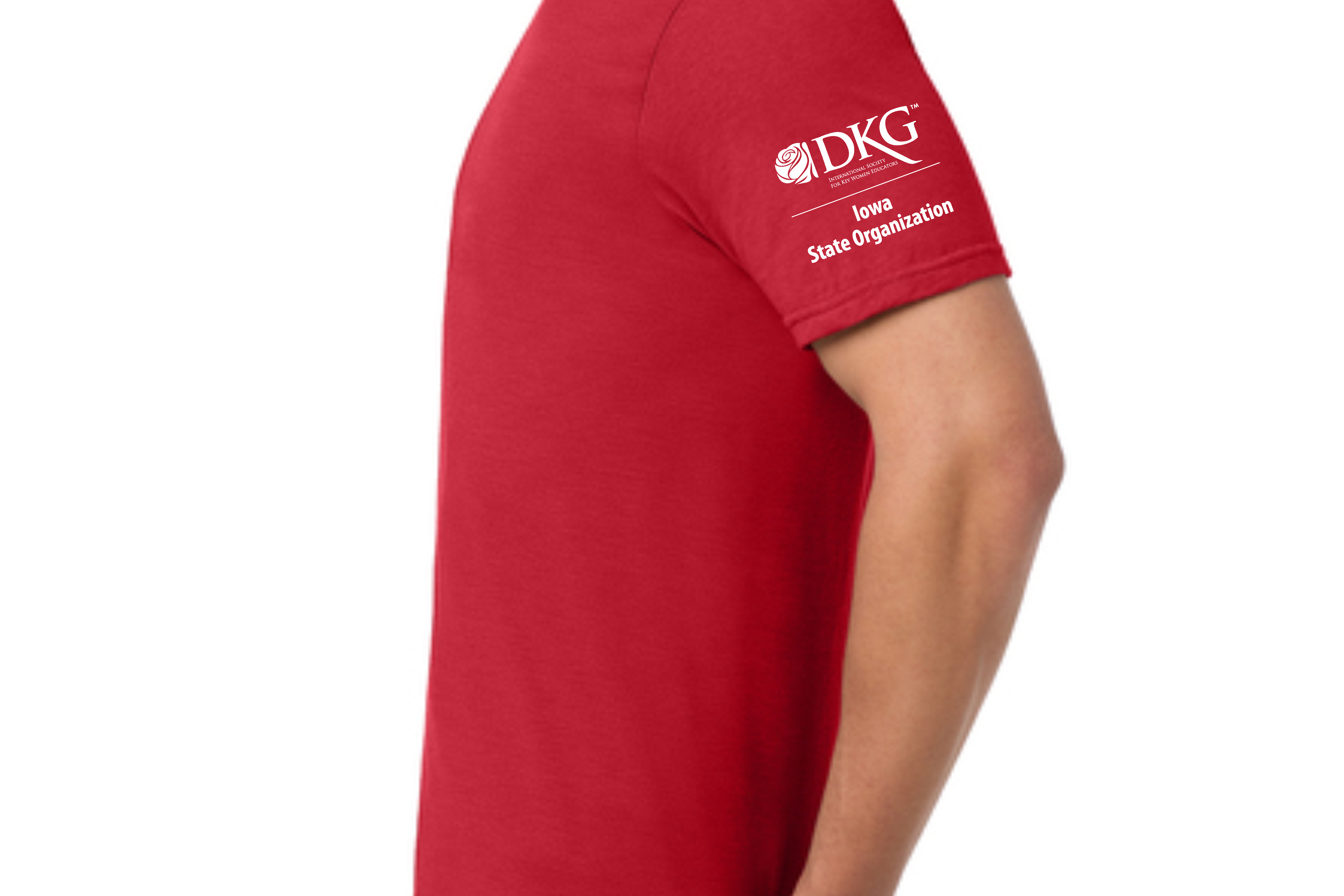IOWA Thrive tee Gildan Softstyle T-Shirt. 64000 ONLY AVAILABLE IN IOWA. Front THRIVE print, left sleeve DKG Iowa print, back Empowering print. 4.5-ounce 100% ring spun US cotton Non-topstitched rib collar Taped neck and shoulders Recycled high-performing black tear-away label Modern classic fit seamless body Double-needle sleeves and hem Product Spec Sheet Color Swatch