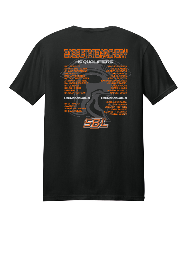 SBL State Qualifier Roster Tee 64000 Gildan Softstyle Short Sleeve T-Shirt. 64000 Front state archery logo & back team roster print. 4.5-ounce 100% ring spun US cotton Non-topstitched rib collar Taped neck and shoulders Modern classic fit seamless body Double-needle sleeves and hem Product Spec Sheet Color Swatch