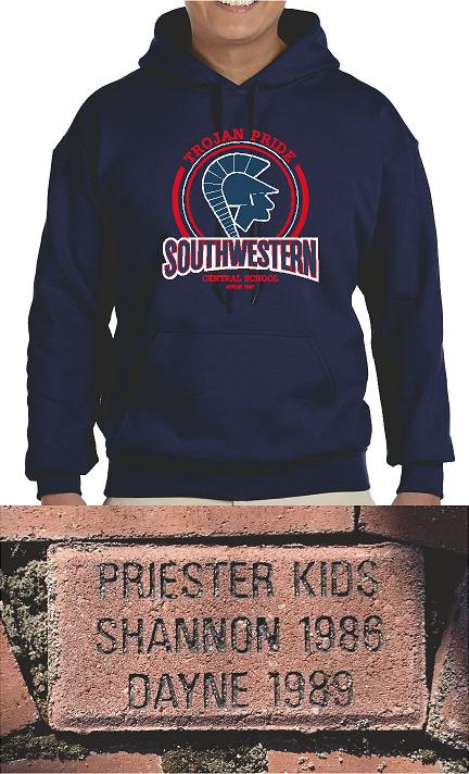 A002 Engraved Brick and Hoodie CombSupportive Memorial Brick and Gildan Hoodie Material: 8 oz., 50% USA cotton, 50% polyester Made with 50% sustainably and fairly grown USA cotton Feature: Pill-resistant air jet yarn Double-needle stitching throughout Double-lined hood Pouch pocket; matching drawcord 1x1 ribbed cuffs and waistband with spandex |