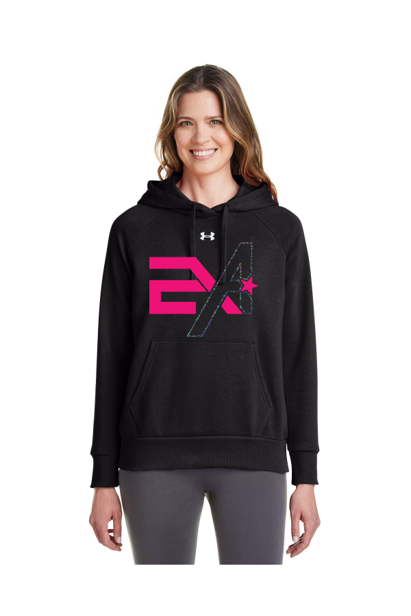 A010B 1379500 Holographic Logo Under Armour Ladies' Rival Fleece HoodieMaterial: 8.11 oz., 80% cotton, 20% polyester Feature: Ultra-soft cotton-blend fleece with brushed inside for extra warmth Front pouch pocket Ribbed cuffs & bottom hem Fuller cut for complete comfort |