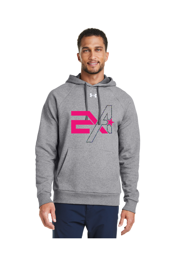 A010A 1379757 Holographic Logo Under Armour Men's Rival Fleece Hooded SweatshirtMaterial: 8.11 oz., 80% cotton, 20% polyester Feature: Ultra-soft cotton-blend fleece with brushed inside for extra warmth Front pouch pocket Ribbed cuffs & bottom hem Fuller cut for complete comfort |