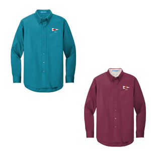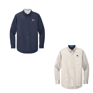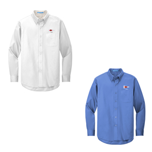 4.5-ounce cotton and polyester 55/45 blend, wrinkle resistant long sleeve dress shirt.