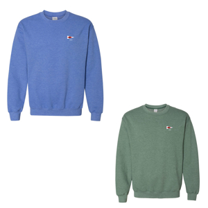 9-ounce, cotton and polyester 50/50 blend crewneck sweatshirt.