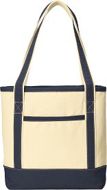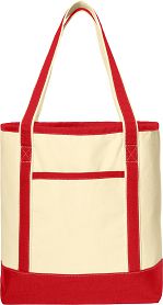 Tote Bag Large Tote Bag with Logo 15.5-ounce cotton canvas tote bag with exterior front pocket and reinforced webbing handles. Measures: 16.5"h x 14"w x 7.5"d.