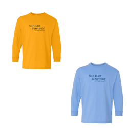 Youth heavyweight 100% cotton long sleeve tee with printed lat/long logo.