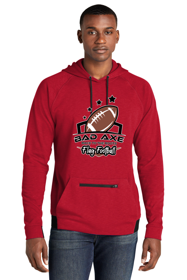 Description Achieve what you strive for in this elevated style that has a soft natural hand and a slub appearance. PosiCharge technology keeps the colors strong and vibrant. 8.9-ounce 90/10 poly/cotton fleece Three-panel hood Tear-away removable label Raglan sleeves with coverstitching Zippered mesh pocket on front pouch pocket Half elastic half self-fabric cuffs and hem for comfort