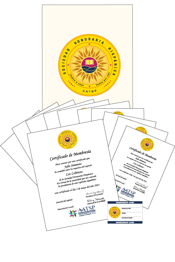 SHH-XCCSHH PERSONALIZED CERTIFICATES WITH CREAM COVERS PREPARED BY AATSP-STORE (MINIMUM ORDER 10)TO ORDER, SPONSORS MUST BE REGISTERED, PAY THEIR NATIONAL MEMBERSHIP DUES TO AATSP.ORG & REGISTER THE INDUCTEES FOR THE CURRENT SCHOOL YEAR. The Certificate features the SHH & AATSP seals in full color. Certificates are personalized with your induction Ceremony date, Chapter Name and Student Name. Included are Cream Lined Covers with Corner Pockets, decorated with the SHH Seal in color. Acetate covers provided to protect certificates. PLEASE NOTE: 10 business days required for production. FREE: 10 Membership Cards Access Ordering Instructions |