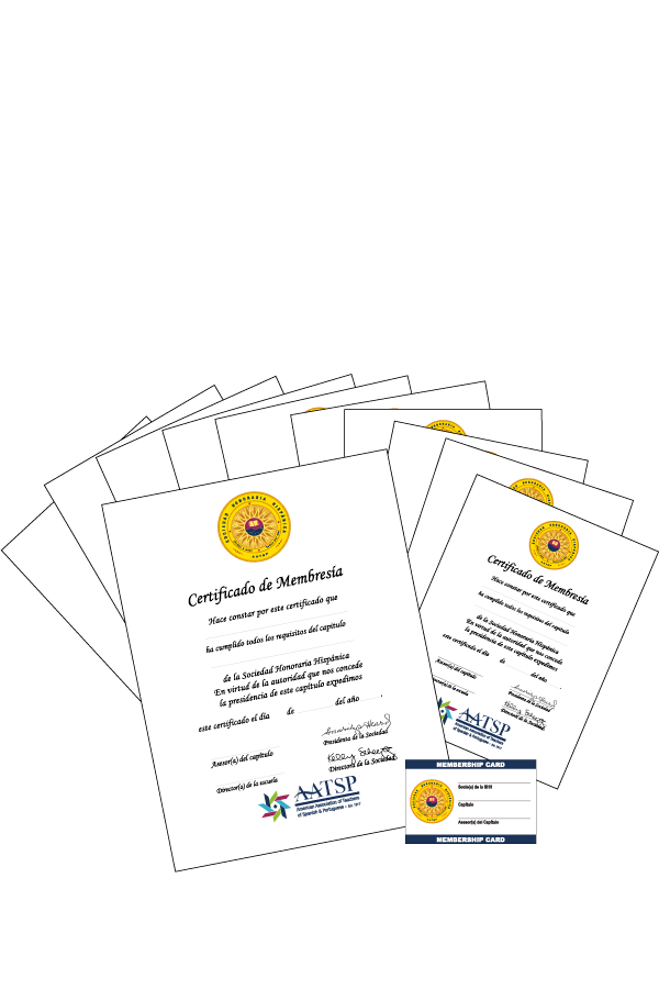 10 Certificates with the SHH & AATSP seals in full color. The Printed Certificates have blanks for you to complete the Induction Date, Student and Chapter Name.