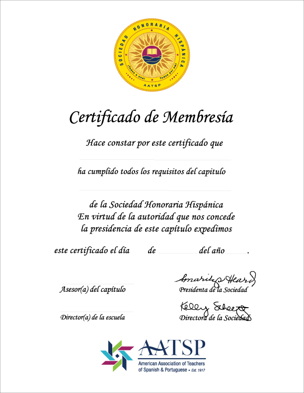 SHH-XPR SHH 10 OFFICIAL MEMBERSHIP CERTIFICATES WITH LINES TO ORDER, SPONSORS MUST BE REGISTERED, PAY THEIR NATIONAL MEMBERSHIP DUES TO AATSP.ORG AND REGISTER INDUCTEES FOR THE CURRENT SCHOOL YEAR.