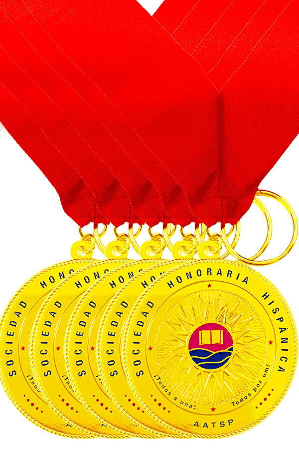 Description Sociedad Honoraria Hispanica FULL COLOR medallions, 2.5" in diameter with 30" neck ribbon. Wear at Graduation or at your Official SHH ceremony. After the event, the recipient may use as a keychain. A special keepsake for the member to remember this "Special Time"!