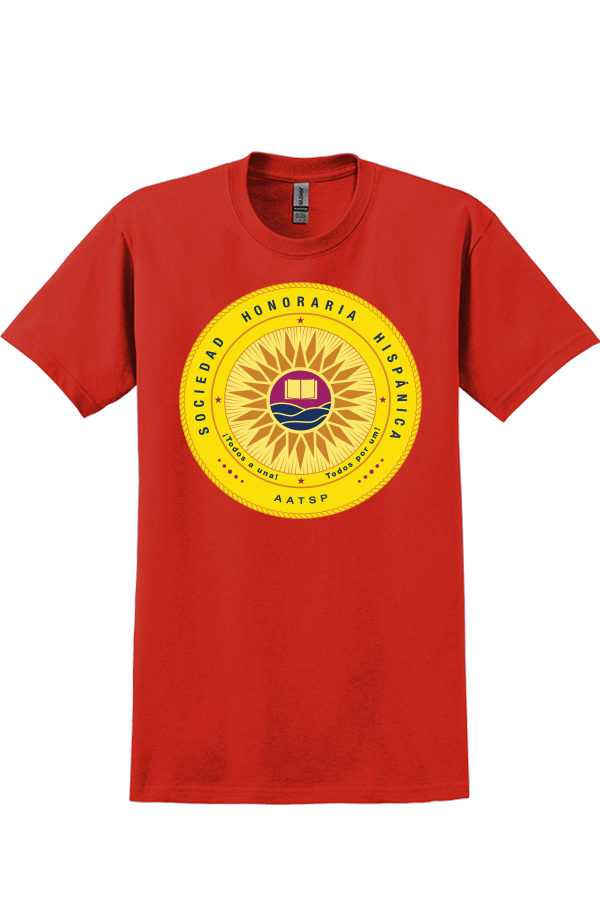 Red short sleeve t-shirt made of 60/40 cotton/poly blend with SHH logo imprinted in full color on front.