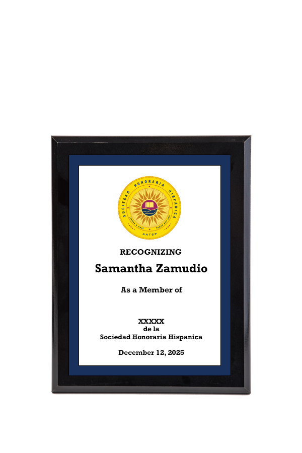 Description Deluxe 6" x 8" plaque with personlization featuring the SHH Seal. Exceptional individual student recognition, officers, accomplishments, etc.