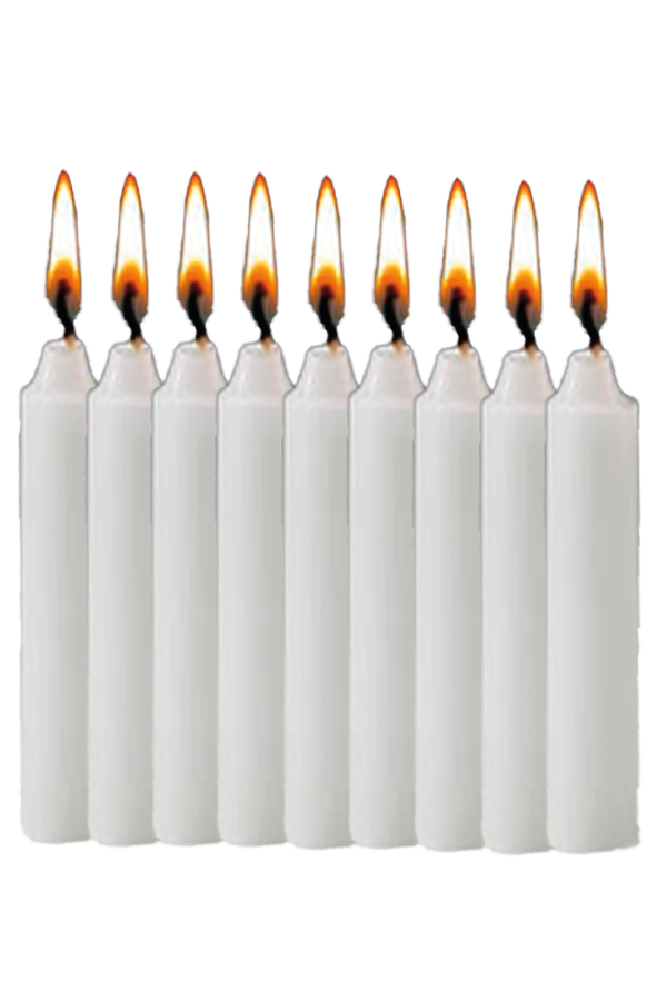 SHH-PKGCANDLE 25 SHH CEREMONY CANDLES Comes in a set of twenty-five (25) white candles with drip protectors will add candlelight to your special ceremony. Unscented candles burn clean, no smoke, and dimensions are 0.5" diameter, 5" tall.