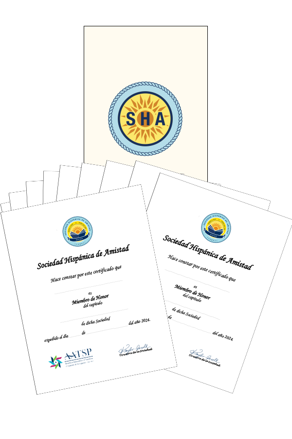 SHA-CERTHONCC SHA 10 OFFICIAL HONOR CERTIFICATES WITH COVERS TO ORDER, SPONSORS MUST BE REGISTERED, PAY THEIR NATIONAL MEMBERSHIP DUES TO AATSP.ORG AND REGISTER INDUCTEES FOR THE CURRENT SCHOOL YEAR.