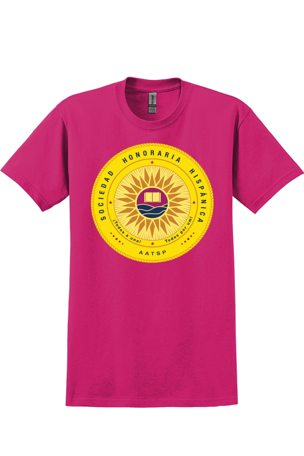 Pink short sleeve t-shirt made of 60/40 cotton/poly blend with SHH logo imprinted in full color on front.