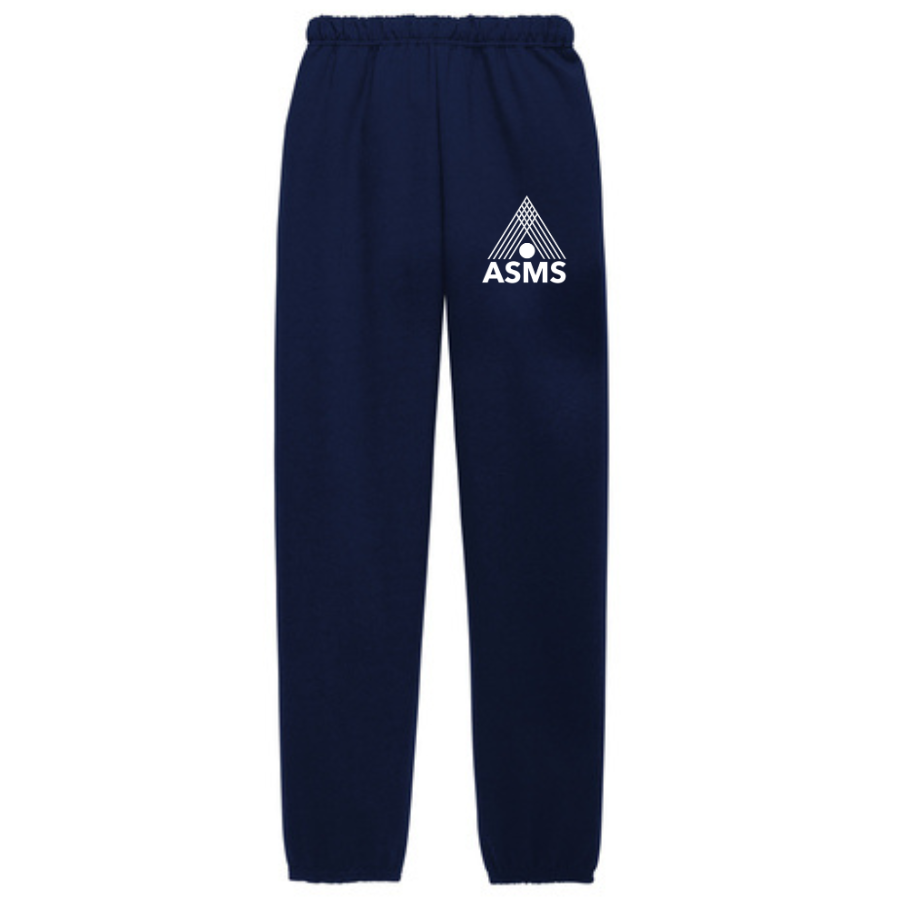 Sweatpant with ASMS Logo Color Options: Black & Navy Sweatpants made of pill-resistant fleece with high-stitch density for a smooth feel and warm lining. The ASMS logo is printed on the front in white.