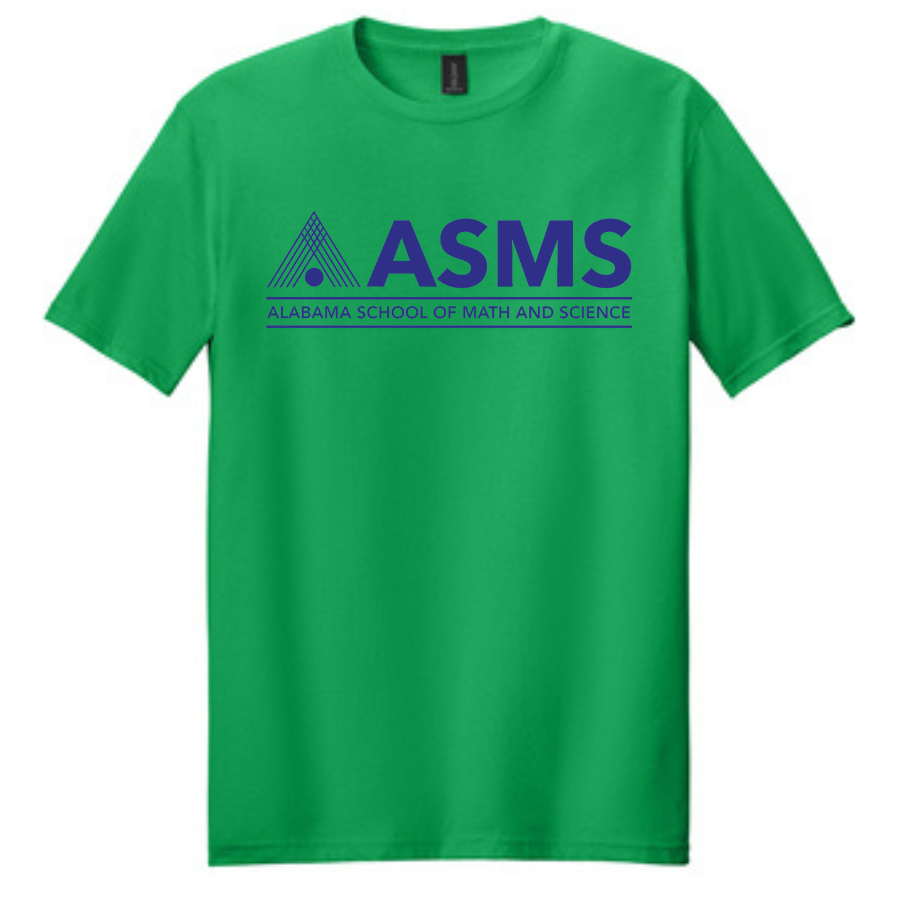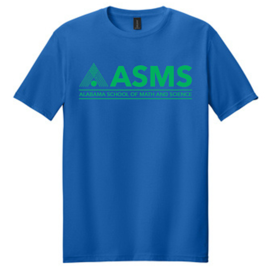 T-Shirt with Alabama School of Math and Science Logo - Blue/GreenThe ASMS logo are printed on the front on this soft-style t-shirt. 4.5-ounce, 100% ring spun US cotton, Non-top stitched 5/8" rib collar, Taped neck and shoulders, Modern classic fit, seamless body, Double-needle sleeves and hem, Recycled, high-performing black tear-away labelProduct MeasurementsProduct Spec Sheet Color Swatch |